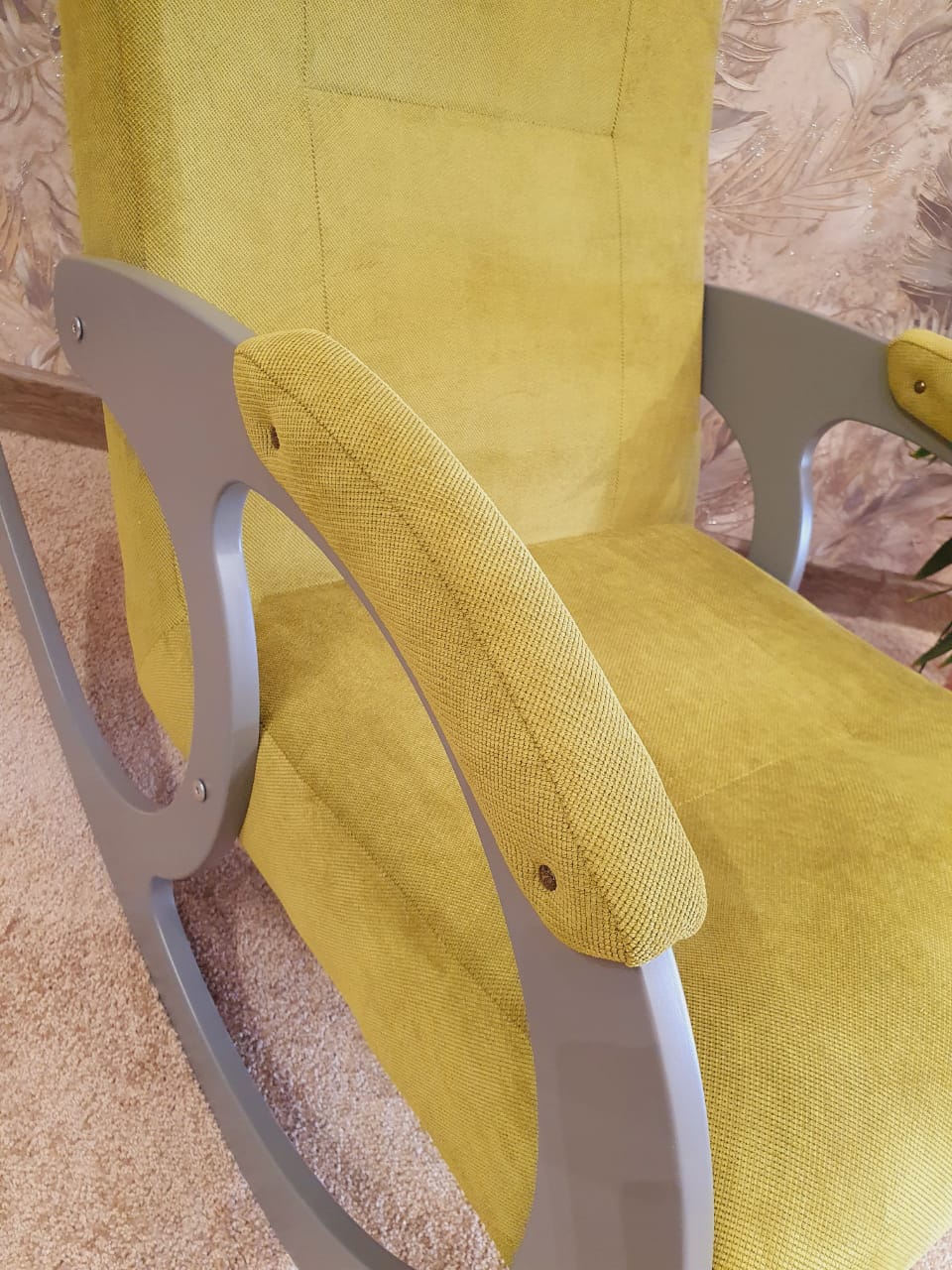 Мягкое кресло-качалка традиционной конструкции. Каркас и боковины, изготовлены из прочной фанеры, на высокотехнологичном оборудовании. Максимально допустимая нагрузка - 100 кг. Своеобразная форма боковин делает кресло оригинальным. Эргономичные сиденье и спинка, мягкие подголовник и подлокотники, оптимальный угол наклона и диапазон качания обеспечивают максимальный комфорт. Обивка кресла – ткань различных расцветок или экокожа – легко поддается чистке, что делает уход за креслом необременительным. Кресло-качалка выпускается в нескольких цветовых решениях, что дает возможность подобрать тот вариант, который украсит ваш интерьер.